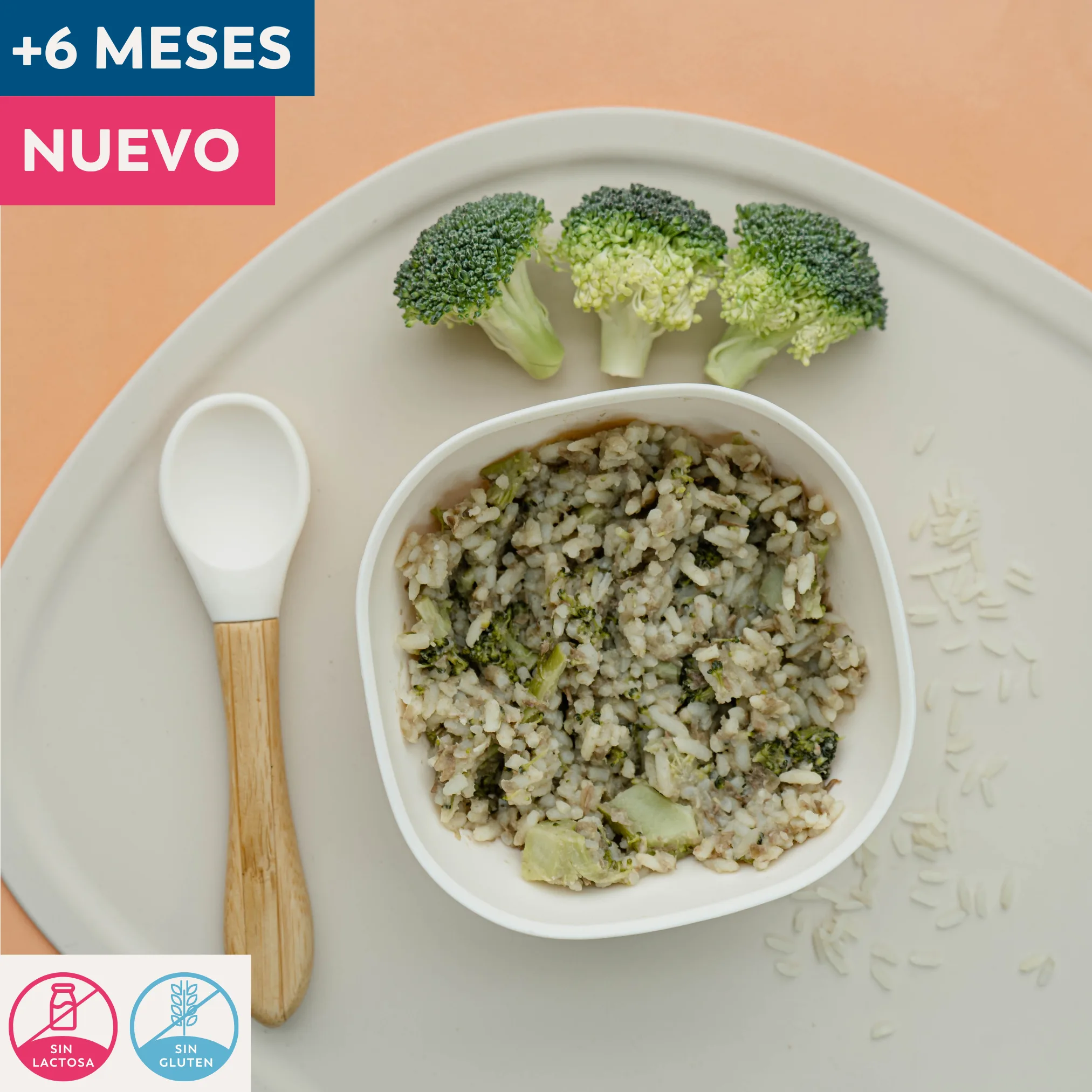 Arroz con lentejas bien cocidas y brócoli, preparado con ese toque casero que logra una textura suavecita y deliciosa. Un platito verde lleno de sabor y nutrientes.
